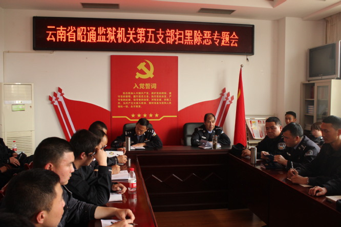 为贯彻落实中央、省委、省厅局关于扫黑除恶专项斗争的各项部署要求,4月9日,昭通监狱机关第五党支部全体成员召开扫黑除恶专项斗争工作会,对扫黑除恶专项斗争工作进行全面安排部署,并开展扫黑除恶应知应会专题学习。