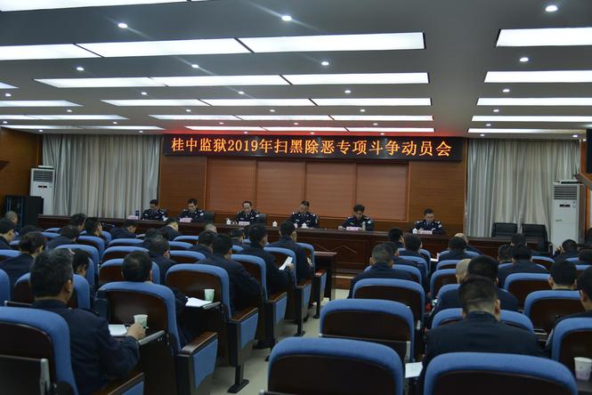 一是召开动员部署推进会。2019年4月1日,自治区监狱局组织召开了全区监狱扫黑除恶专项斗争动员部署会。会后,桂中监狱党委高度重视,及时贯彻落实会议精神,于4月3日上午,组织召开了扫黑除恶专项斗争动员部署大会。进一步总结监狱2018年在扫黑除恶专项斗争中取得成绩,存在的问题,分析工作形势,并对做好2019年扫黑除恶专项斗争进行再动员再部署,进一步提高政治站位,强化思想认识,为推动扫黑除恶专项斗争向纵深发展奠定基础。