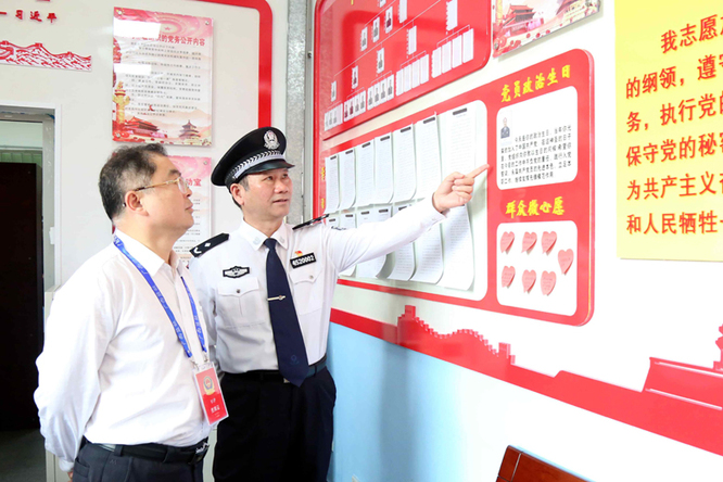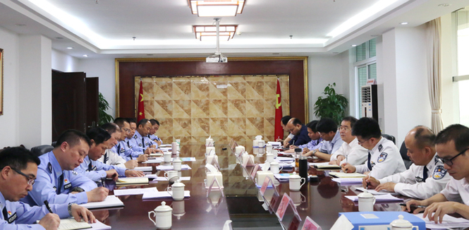 林金文书记一行深入梧州监狱监管一线查看了监管硬件设施和警察值勤执法工作情况。在调研座谈会上,林金文书记听取了梧州监狱党委副书记、政委韦光天关于警察队伍“四化”建设工作的情况汇报,他对梧州监狱以党建带队建、强改革、促发展的经验和成果予以肯定。