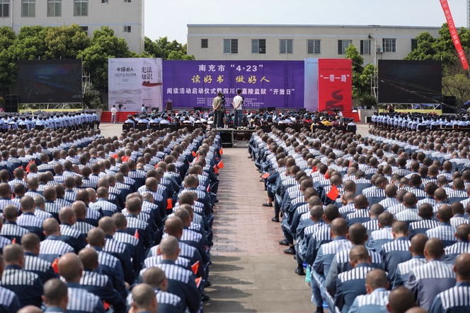 4月18日下午,四川省嘉陵监狱塑人文化广场,巨大的模型书籍矗立舞台,鲜艳的标语迎风飞舞。在第24个“世界读书日”来临之际,南充市4.23“读好书·做好人”阅读活动启动仪式暨嘉陵监狱“开放日”活动在这里成功举行。