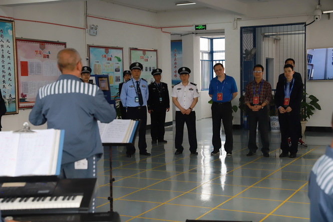 在入监监区,殷处长一行观看了罪犯文艺组奏唱《我和我的祖国》,对监狱在文化改造中始终保持政治改造方向的做法表示赞赏。