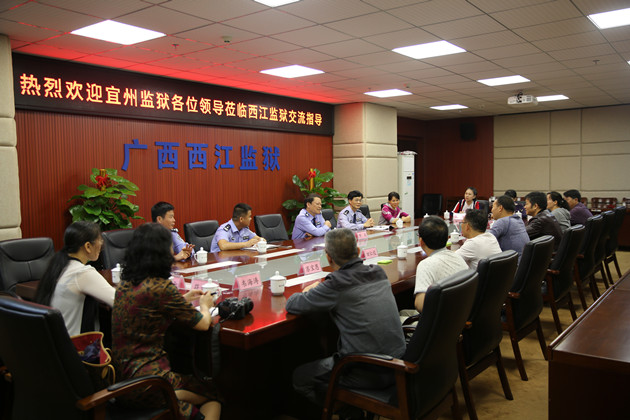 近日,宜州监狱政治处主任陈上强带领离退休人员管理科、宣传教育科、基建计划科等有关科室一行14人来西江监狱参观学习,监狱党委委员、副政委邓高全程陪同。