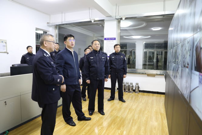张森副局长一行来到监狱后深入到监管区“三大现场”,对监控平台、值班室、备勤室、监舍、车间、监内门诊、病房、指挥中心等重点区域进行检查调研;详细了解了监狱安全监管设施、医疗设备运行和现场执法管理情况,细致查看了监控二级平台监管值班和高清摄像监控全覆盖情况。调研过程中,张森副局长在艾滋病监区警察值班室通过值班监控平台查看了解了服刑人员改造情况,要求值勤干警规范执法严格现场管理,叮嘱值班干警落实好监管制度,站好岗,值好班。