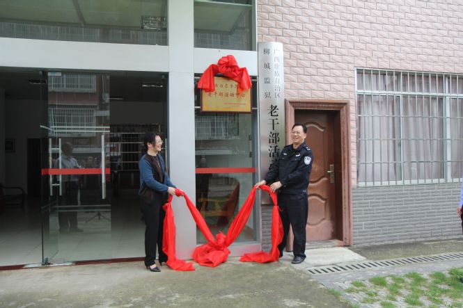 随后,自治区监狱管理局党委委员、副政委赖伟容,柳城监狱党委书记、监狱长覃洲共同为柳城监狱“自治区示范老干部活动中心”揭牌。