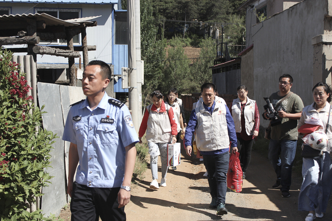 5月31日上午,监狱教育科与抚顺市聚沙公益阳光志愿服务队、新抚公安分局志愿服务队一行十余人来到抚顺市顺城区东华村,对罪犯金某开展家访。