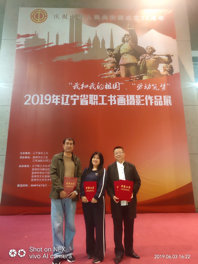 6月3日下午,辽宁省总工会为庆祝中华人民共和国成立七十周年举办的大型职工书画摄影展览在盘锦市美术馆隆重举行。本次展览以“我和我的祖国·劳动筑梦”为主题,全省近万名各行业职工参与本次展览创作活动,投送作品万余幅,经评选共展出书法作品260幅、绘画作品150幅、摄影作品150幅。其中凌源第一监狱警察郭利光绘画作品《长子情怀——大义工农请》获得美术类特等奖;李兆林书法作品《黄龙驾云腾沧澜》获得书法类银奖;杨薇摄影作品《万马奔腾》获得摄影类金奖。这是凌源第一监狱历年来参与类似活动获奖作品最多、等次最高的一届。