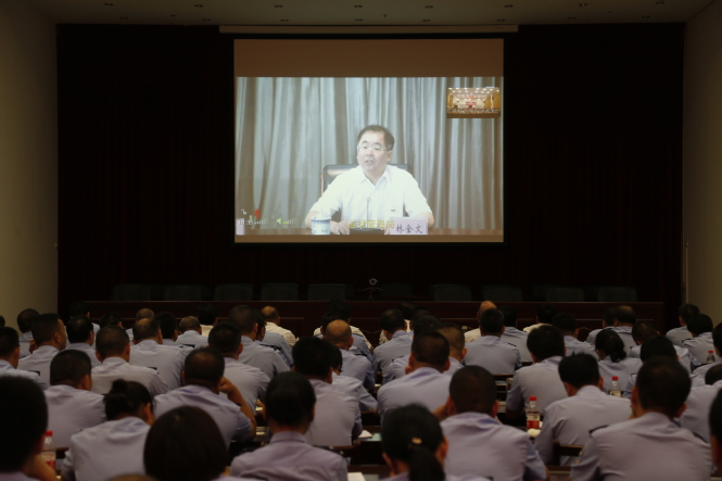 监狱局党委委员、副局长范庆平,监狱局狱政管理处处长封海林和生活卫生技术装备处处长宁国明在我监狱分会场参加会议。监狱、公司领导,工会主席,正、副调研员,监狱、公司中层以上领导和机关全体警察共190余人参会。