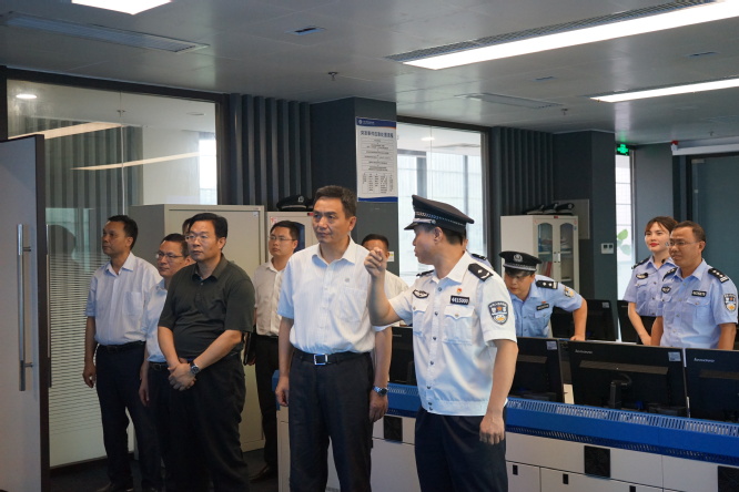 最后,李书记一行来到监狱指挥中心,对监狱整体运作模式、信息化建设情况、罪犯关押类别及教育改造情况进行仔细询问和详细了解。调研中,李书记本着“解决实际问题”的原则,重点了解了监狱当前发展中需要地方政府配合解决的一些实际问题,并要求相关部门加强调研和监地合作,大力支持驻地监狱的工作和发展,共同维护好一方平安。