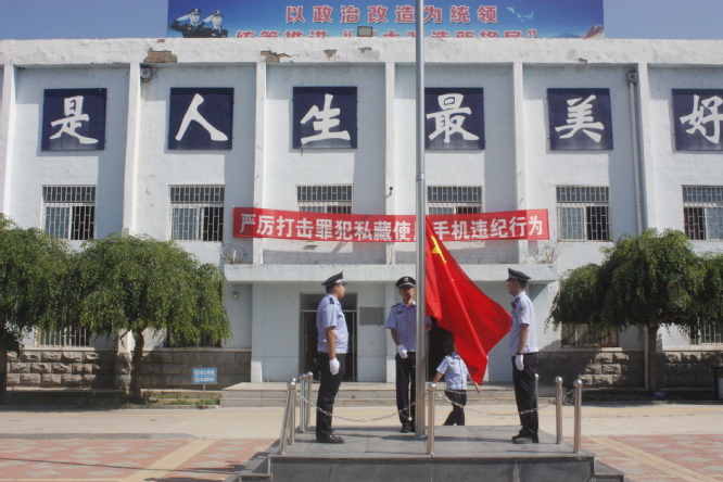 教育科科长郝杰参加升旗仪式并做了国旗下教育讲话,他教育服刑人员要有对伟大中国共产党、对伟大祖国、对社会主义制度的认同感,要把这种认同感转化为认罪悔罪、遵规守纪、积极劳动、积极学习的改造行动中去,要主动学习法律、遵守法律,胸怀对伟大祖国的热爱,以实际行动爱国。