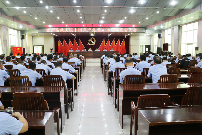 7月1日上午,钦州监狱召开庆祝中国共产党成立98周年纪念大会暨“不忘初心 牢记使命”主题教育专题党课,以隆重集会,纪念党的98岁生日。