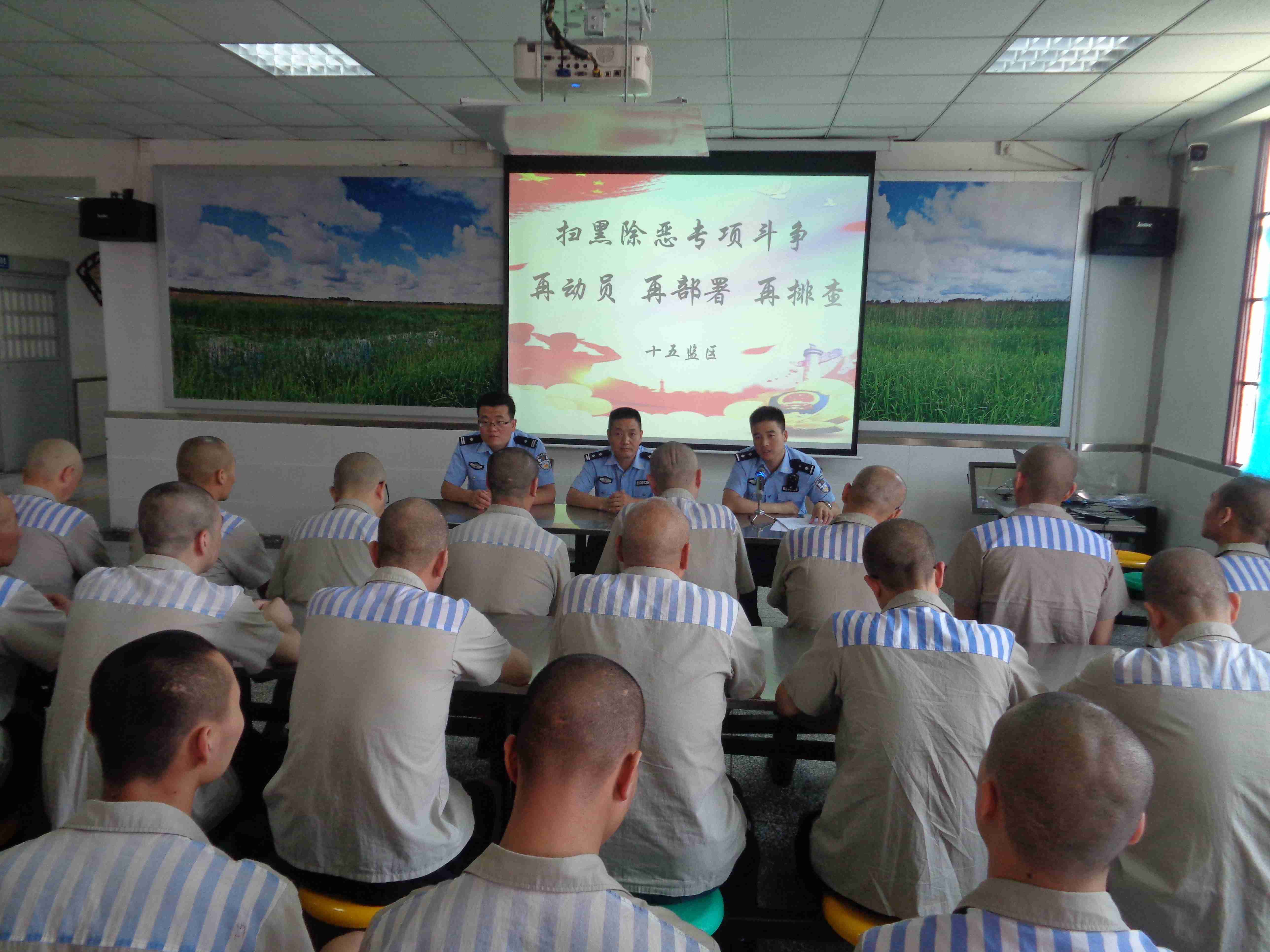 近期,按照中、省、厅、局和监狱扫黑除恶专项斗争工作的部署要求,陕西省黄陵监狱十五监区组织罪犯召开了扫黑除恶专项斗争“再动员、再部署、再排查”会议,进一步助推扫黑除恶专项斗争工作向纵深发展。