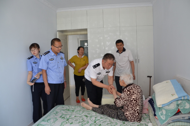 “老人家,我代表内蒙古组织部、内蒙古司法厅、五原戒毒所三级党委来看望你,祝愿您健康长寿、心情舒畅。做为建国前老党员,我们以您的对党无限忠诚、对中国革命作出的贡献致以崇高敬意,我们要学习老一辈共产党员一心为党、忠于革命、用一辈子践行共产党员的使命。”五原戒毒所王聪明所长拉着建国前老党员、九十一岁高龄的牟乃蕊的手一边递出慰问金一边亲切的说。