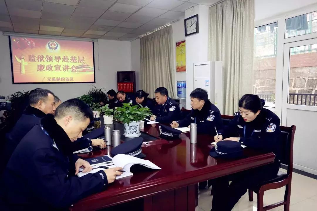 广元监狱党委深入学习习近平总书记、省委彭清华书记重要讲话精神,认真贯彻落实中纪委、省纪委全会精神以及全省司法行政系统、监狱系统党风廉政建设和反腐败工作会议精神。进一步全面从严治党、持续深化党风廉政建设和反腐败工作,立足教育强整治,打好党风廉政建设“四抓四强”组合拳,激发党员干部队伍清风正气、干事创业,全力助推“三年铸特色”稳步开局。