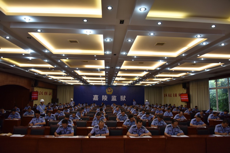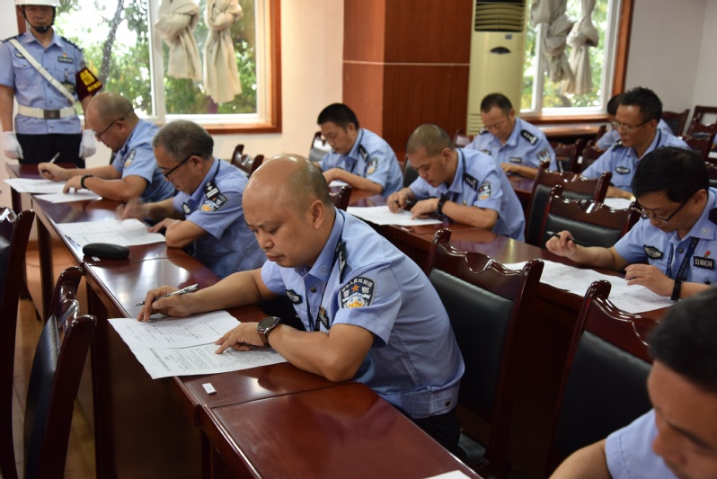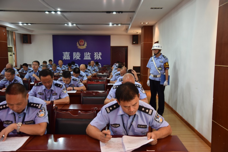 此次大比武按照统一试卷分类、统一评分标准、随机定时间、随机定人员的原则,在每个科室按照男民警人数30%比例抽至少1名民警、每个押犯单位按照男民警人数30%的比例抽至少1名监区领导在内的民警参加比武。在考前1小时,由狱政管理科和督察科共同抽签确定人员,并全程录像,纪检监察科全程监督。考试分为A、B卷,满分100分,闭卷,时间为一个半小时。题目全部从《四川省嘉陵监狱关于进一步明确罪犯离监就医职责的通知》、《四川省嘉陵监狱罪犯就医管理办法》、《关于印发<四川省嘉陵监狱监外防脱逃系统管理办法(试行)>的通知》中设置,考的就是民警是否将规章制度入脑入心!各押犯单位比武采用A卷,内容为离监就医与互监组相关业务知识,集中在一个考场。机关科室民警比武采用B卷,内容为离监就医相关业务知识,集中在一个考场。考场上,参考民警精神高度集中、全神贯注进行答题。在这次考试中,临时发生了一段小插曲。特警队韩华扬在开车上班过程中发生了小型追尾事故。在处理完事故之后,仍然迅速赶往考场,在督察科和监狱领导的监考下,独自完成了紧张的考试。