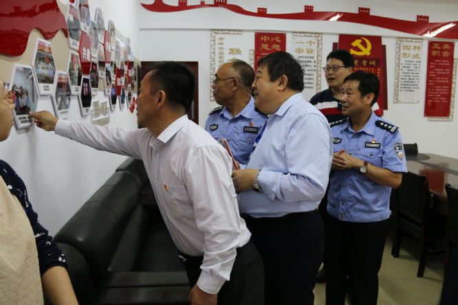 随后,李春林院长一行重点参观了赤峰市戒毒所融合党建工作宣传长廊、联合党委会议室、党员活动室。李春林院长一边饶有兴趣地观看融合建设宣传教育图片,一边认真听取牛芳泽局长、李广怀所长和孟和平政委有关全市司法行政系统融合党建工作开展,赤峰市戒毒所联合党委组织构成、业务开展、工作成效、社会影响,以及《法制日报》、《法制网》等国家主流媒体对全市司法行政系统融合党建工作的宣传报道与高度评价等情况的工作汇报;同时,仔细翻阅了赤峰市司法局编辑的《赤峰市司法局融合党建宣传集锦》、赤峰市戒毒所联合党委编辑的《制度汇编》、《融合成果汇编》和《共建共融共享共赢、创新机制引领发展》宣传彩页等。