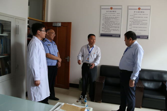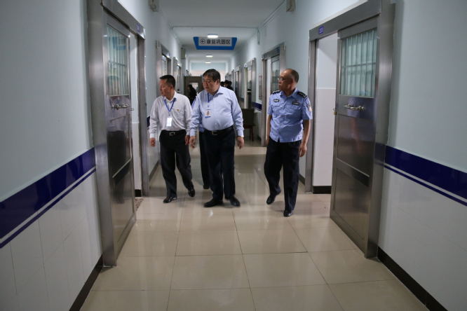 李春林院长一行一到赤峰市戒毒所便深入戒毒人员生活区、干警办公区等对戒毒人员餐厅,超市、卫生所、宿舍、盥洗室、单独管理室、电子图书阅览室和文体活动室教室等,进行认真全面的调研,还观看了戒毒人员太极拳健身康复训练。在调研过程中,李春林院长详细了解了戒毒人员教育、管理、戒治、习艺劳动、职业技术教育和康复训练等方面的情况,指出要充分发挥融合建设的政策与制度优势,以党建带队建,推动各项业务工作稳步发展,不断提高教育转化和戒治质量。