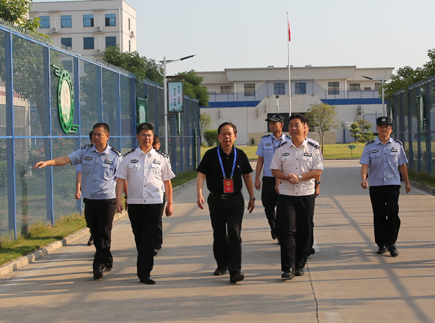9月24日,自治区纪委驻自治区司法厅纪检组组长、正厅级纪律检查员、司法厅党委委员何江,自治区司法厅党委委员、监狱管理局党委书记、局长李健等一行四人到西江监狱检查指导国庆和中国—东盟“两会”期间的安保维稳工作。