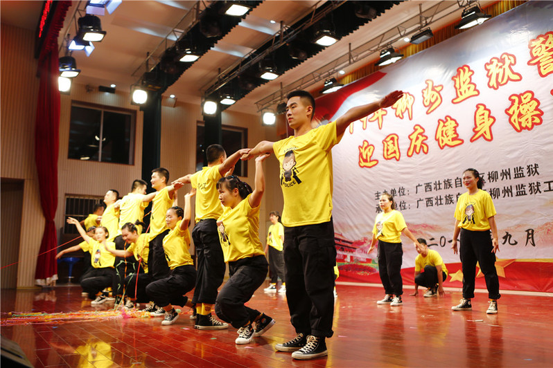 2019年柳州监狱警察职工迎国庆健身操比赛于9月29日在监狱礼堂火热上演,各参赛代表队均派出强大阵容参加了此次比赛。比赛所设的10名评委,都是从15个代表队中通过抽签选出的,分别由监区领导和普通警察担任。
