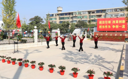 9月29日,天高云淡,阳光明媚。庄里监狱门前广场上,五星红旗迎风飘扬,鲜花吊篮团团锦簇,“国庆70周年”花坛显得分外夺目,呈现一派喜庆气氛。