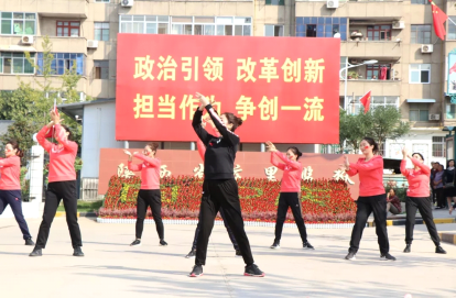 广场舞《动感新时代》,歌颂了五十六个民族像石榴籽一样紧紧抱在一起,万众一心走在奔小康的幸福路上。