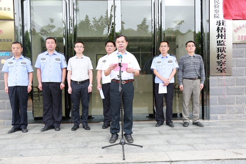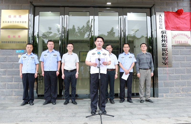 10月24日,梧州市社区矫正警示教育基地揭牌仪式暨监地合作共建座谈会在梧州监狱举行。梧州监狱党委书记、监狱长李建安,梧州市司法局党组书记、局长赖定金共同为梧州市社区矫正警示教育基地揭牌。梧州监狱、梧州市司法局相关领导同志以及梧州市各县(市、区)司法局局长、挂职监狱戒毒人民警察参加活动。