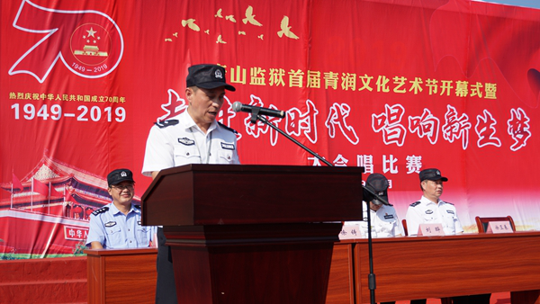 当天开幕式在《义勇军进行曲》中拉开序幕,监狱党委书记、政委徐玉春宣布首届青润文化艺术节开幕。监狱党委副书记、监狱长张林森致开幕辞。开幕式后,监狱举办了“走进新时代 唱响新生梦”罪犯大合唱比赛。比赛中,各参赛队伍铆足干劲,精心策划,用心挑选参赛曲目,别出心裁设计音乐背景,充分发挥本监区民警和罪犯的特长,有的参赛队伍将武术、锣鼓、朗诵、独唱等艺术形式融入大合唱中,还有的队伍则以队形变化为特色,摆出了“2019”“70”等造型,将各种艺术造型融入到大合唱中,以朝气蓬勃的精神面貌精彩演