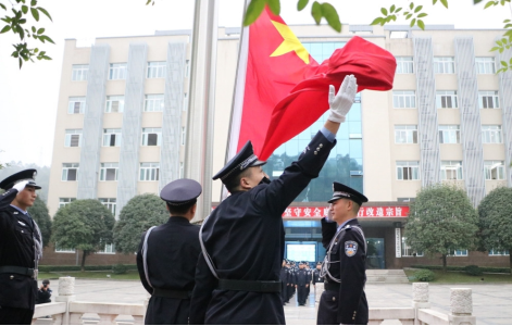 2019年11月4日上午,宜宾监狱指挥中心广场一片肃然,民警整装列队迎着初冬的丝丝寒意,齐聚在指挥中心广场举行升国旗仪式,伴随着庄严的国歌声,大家心潮澎湃,带着学习贯彻党的十九大四中全会精神的热情,在飘扬的国旗下,以坚守之名,开启十一月的奋斗冲刺时光。