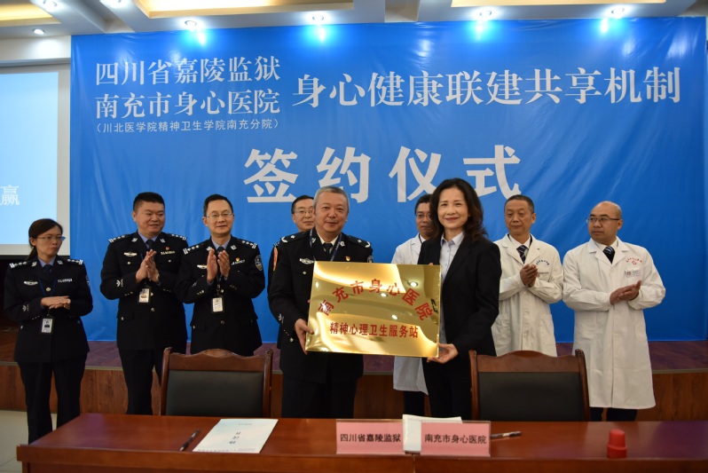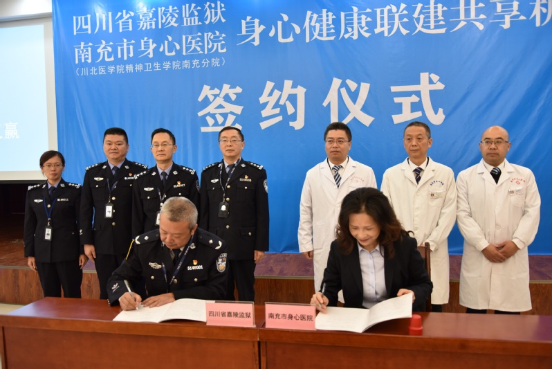 11月7日上午,四川省嘉陵监狱与南充市身心医院在监狱隆重举行身心健康联建共享机制签约仪式。监狱长蒲艾、身心医院院长刘月光及双方领导班子成员出席签约仪式。双方单位科级主要负责人、民警和医院代表150余人参加此次活动。