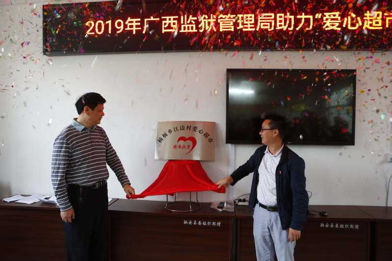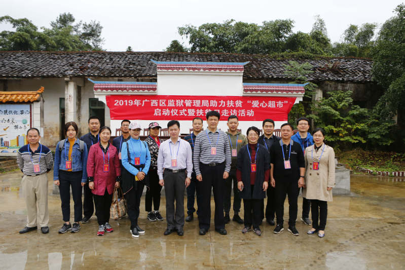 2019年11月13日,自治区监狱管理局在融安县桥板乡江边村举行扶贫爱心超市启动仪式。自治区监狱管理局党委副书记、政委农中兴,监狱管理局党委委员、副政委赖伟容出席启动仪式。参加启动仪式的还有监狱局部分机关处室领导和基层监狱主要领导共10余人。