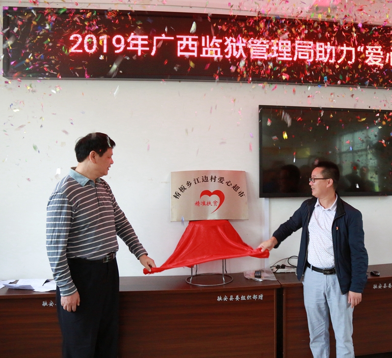 活动当天,监狱扶贫走访小组全体成员参加了广西区监狱管理局助力扶贫“爱心超市”启动仪式,并到爱心超市进行参观。