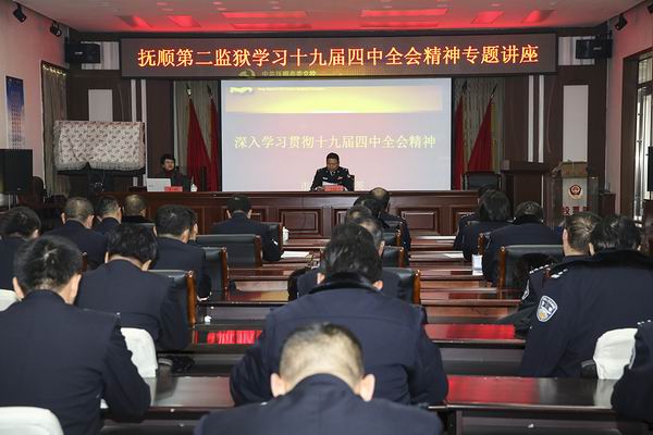 12月23日,辽宁省抚顺第二监狱举办学习十九届四中全会精神专题讲座。监狱领导、中层以上全体干部、机关全体民警和部分基层民警共同聆听讲座。