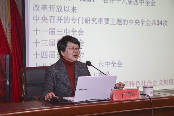 于英教授作了题为《深入学习贯彻十九届四中全会精神》的精彩讲授,围绕学习贯彻党的十九届四中全会精神这一主题,深刻阐明了党的十九届四中全会的重大意义,对全会《决定》提出的总体要求、总体目标和重点任务进行了系统解读,对学习贯彻全会精神谈了认识和体会,对学习党的理论特别是习近平新时代中国特色社会主义思想作了精辟讲解。报告全面准确、精彩生动,旁征博引、内涵丰富,深入浅出,有很强的思想性、针对性和感染力、号召力,使与会同志对全会精神的理解把握得到了深化和提高,对监狱学习贯彻全会精神是非常有益的指导和辅导。