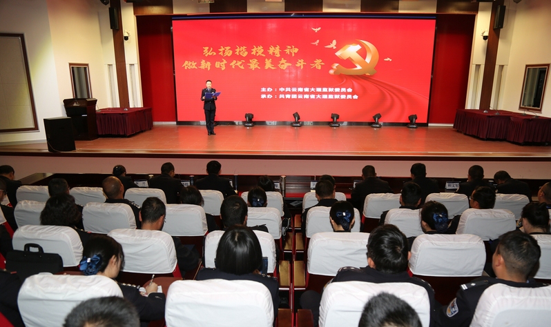 为深入学习贯彻党的十九大和十九届四中全会精神,深刻学习领会习近平新时代中国特色社会主义思想,不断巩固和拓展“不忘初心、牢记使命”主题教育成果,弘扬楷模精神,对标“最美奋斗者”,积极营造崇尚先进、学习先进、争当先进的浓厚氛围,为监狱的安全、稳定和发展凝聚强大的精神力量。12月25日下午,云南省大理监狱举办了以“弘扬楷模精神 做新时代最美奋斗者”为主题的道德讲堂,党委副书记、政委李正平等监狱领导以及110余名警察职工参加了道德讲堂活动。