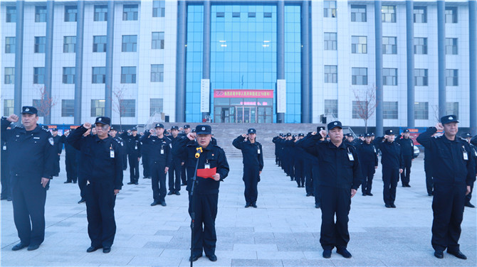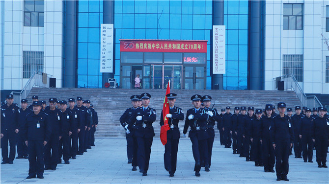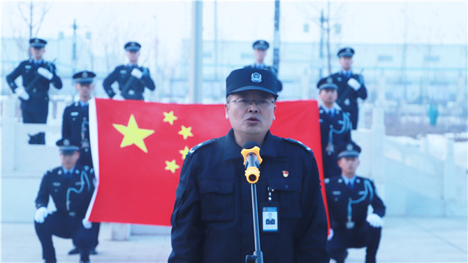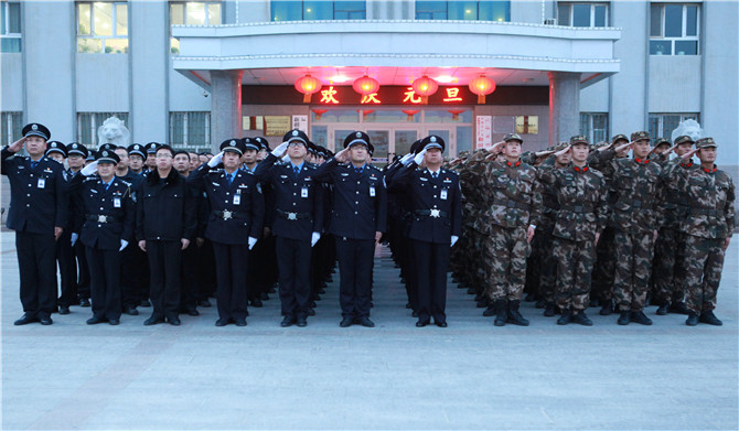 1月1日上午10时,新源监狱民警职工在行政楼前举行了庄严的升国旗仪式,党委书记、政委贺绍军带领全体民警举起右拳,重温入警誓词并向全体民警职工致以新年祝福。