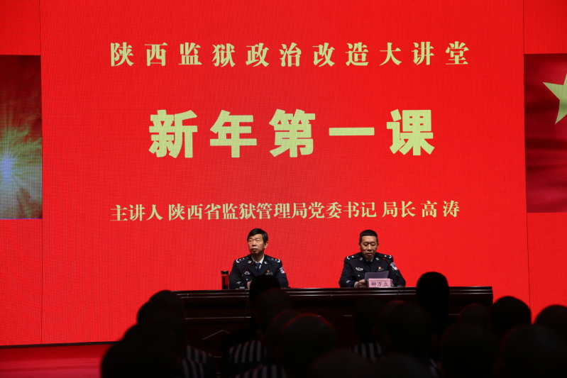 上午10时,在关中监狱培训楼五楼,陕西省厅党组成员、监狱管理局党委书记、局长高涛以《学习领会四中全会精神,主动加强政治改造,切实做到改过自新》为题,通过信息化系统同步直播向全省罪犯进行了授课,授课内容围绕十九届四中全会精神、国家制度建设、国家近年来取得的辉煌成绩、罪犯改造中应把握的问题等,深入浅出地为服刑罪犯指明了今后改造道路。