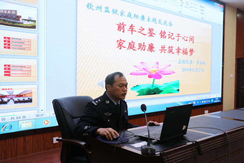 钦州监狱党委委员、副政委岑海洋对长期理解和支持监狱工作的警察家属们表示衷心感谢。他指出,监狱警察工作性质特殊,工作标准高、承担压力大、在岗时间长,照顾和陪伴家人的时间较少,给家庭的正常生活带来了不小的影响,这些都是监狱警察和家属们长期以来,为监狱的安全稳定作出的积极贡献。他希望,广大警察家属能成为预防腐败的重要力量,提高思想认识,明确家庭助廉的重要意义,筑牢家庭拒腐防变的有力防线,做廉政教育的宣传员、廉洁家庭的守门员、勤政廉政的监督员。
