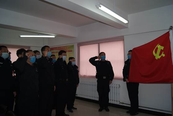 监内临时党支部组织全体党员开展了宣誓活动。鼓舞士气,在党旗下宣誓,重温入党誓词,不忘初心、牢记使命,保证完成好党组织交给的各项任务。