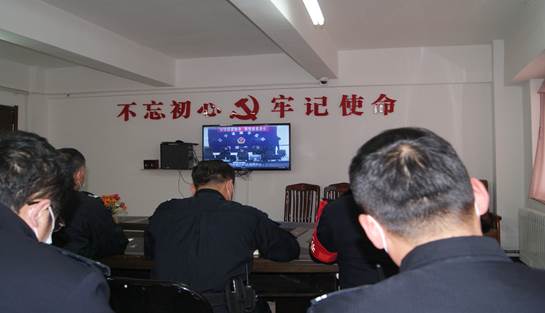监内视频会议分会场的同志们,向监狱党委表态:统一思想,提高政治站位,无条件服从监狱党委的决定,坚决完成好疫情防控任务。