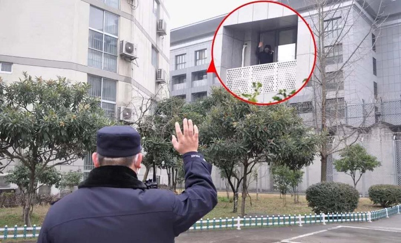 (南京监狱赵辉与同在封闭值勤的妻子隔空鼓励)