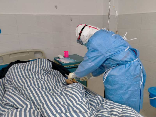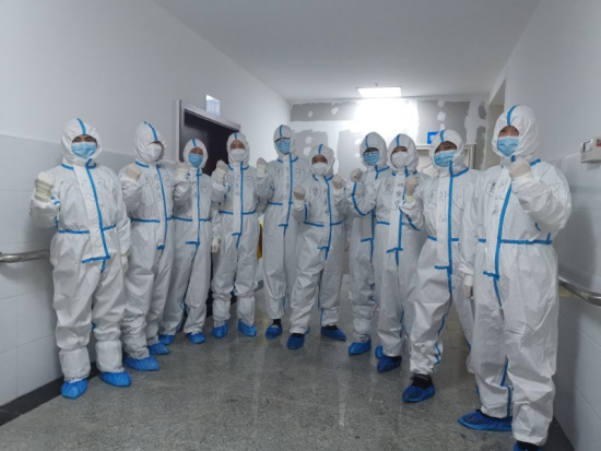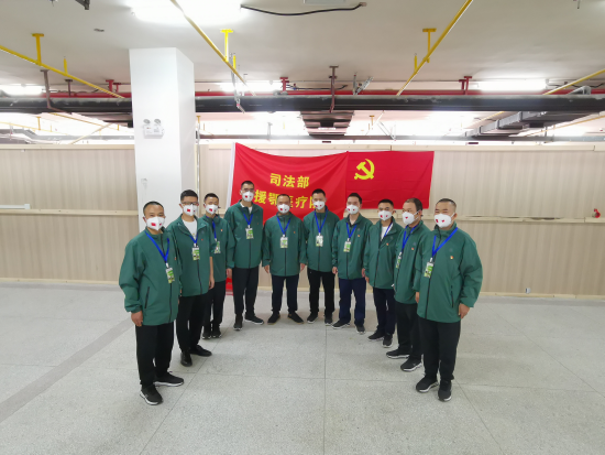 在湖北疫情最严重的时刻,全省监狱护理民警又主动请战,驰援湖北。我省监狱选派的援鄂医疗队整建制接管了受援地两个新冠肺炎病区,护理民警每天身穿防护服,为最大限度节约防护物资,经常连续近10小时不吃不喝不断地挑战极限,他们克服重重困难和压力,用血肉之躯筑起了医疗救护的钢铁长城,实现了接管病区“清零”。随后又在上级的统一安排部署下,转战疫情较重的武汉,出色地完成了各项医疗任务。他们在湖北坚持抗疫两个月,到疫情得到有效控制后才平安凯旋。