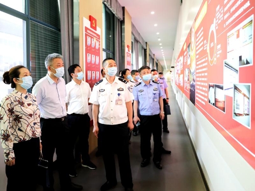 其间,调研组一行实地参观了监狱党建先锋馆,了解了“党建展示区”“优秀党员事迹展示区”“荣誉殿堂”等八大区块的功能与党建工作成效,对省乔司监狱在优秀民警举荐、“两优一先”评选、党员星级量化评定等党建工作上的创新举措给予了充分肯定。