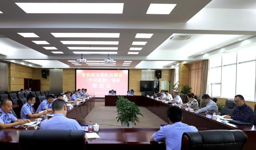 近日,省委政法委政法队伍建设指导室主任童红武一行4人在厅党委委员、政治部主任王争陪同下到省乔司监狱调研队伍建设工作。
