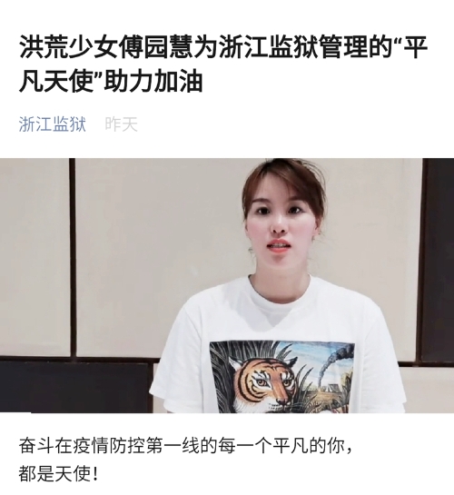6月16日,浙江监狱微信公众号刊发了由省第四监狱制作的《平凡天使》MV,游泳世界冠军傅园慧在视频中出镜,为抗疫一线的监狱民警送上祝福。