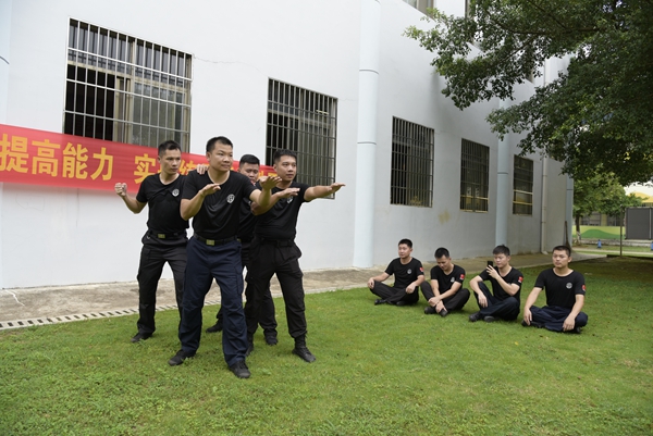 岗位练兵实战化:人人争当尖兵。在抓好业务培训的基础上,各临时党支部、党小组有序安排,充分利用备勤区的场地,队列、擒敌拳、警棍操等警体技能坚持每日一练。特警队员、兼职特警队员的专项技能训练、应急处置预案演练,每周至少练两次。训练中,以老带新、以学促练、以练促学的场景比比皆是。警察健身、跑步、踢球、投篮的身影经常活跃在健身房和训练场,警察中形成练好体能争当尖兵的理念。