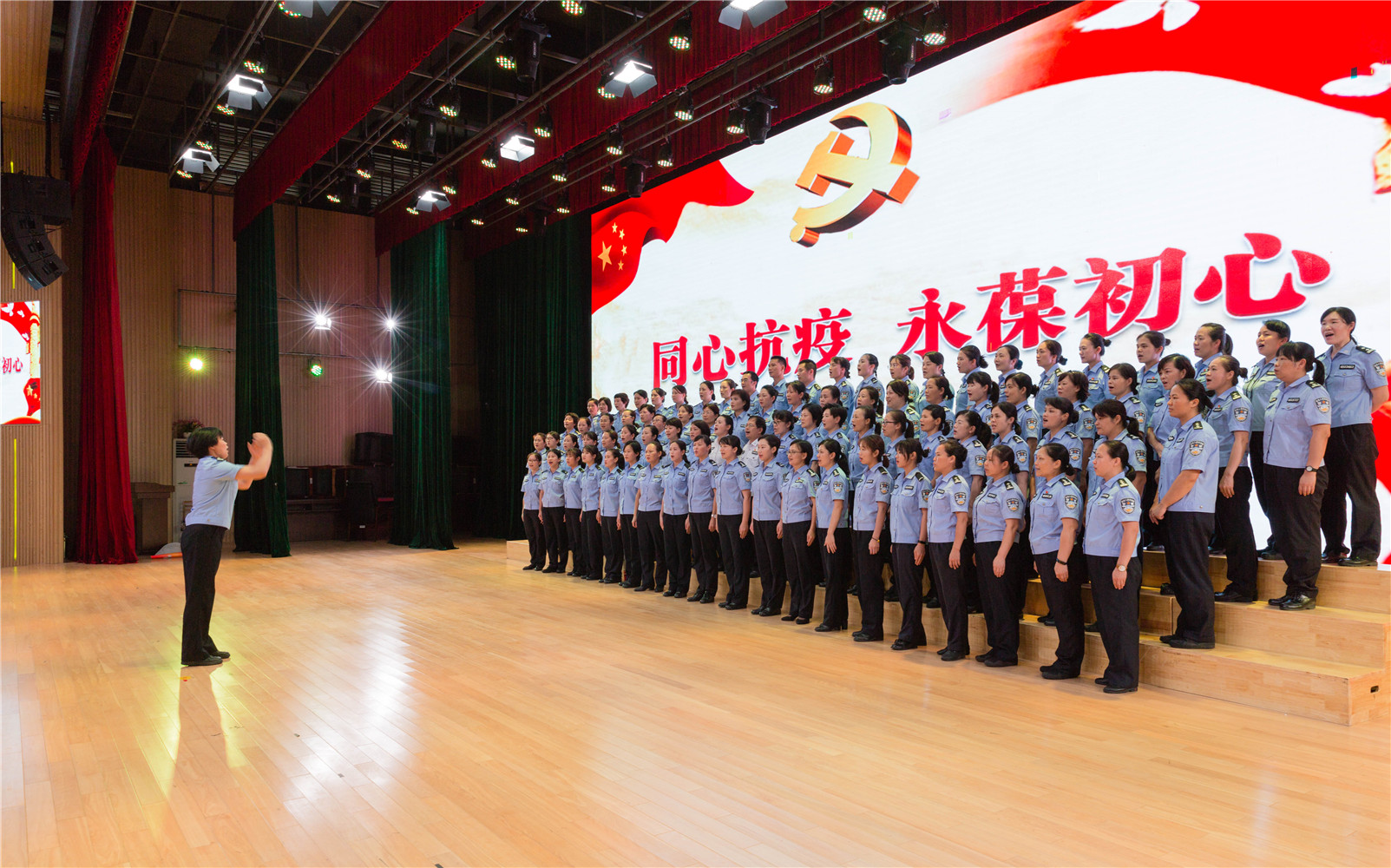 唱支山歌给党听。正在进行第十二批隔离备勤的警花山歌队队员开展“山歌颂党情”活动,现场倾情演唱《唱支山歌给党听》、《我和我的祖国》以及原创山歌《党是一盏指路灯》,表达她们对革命精神的传承和对党的无限热爱之情。