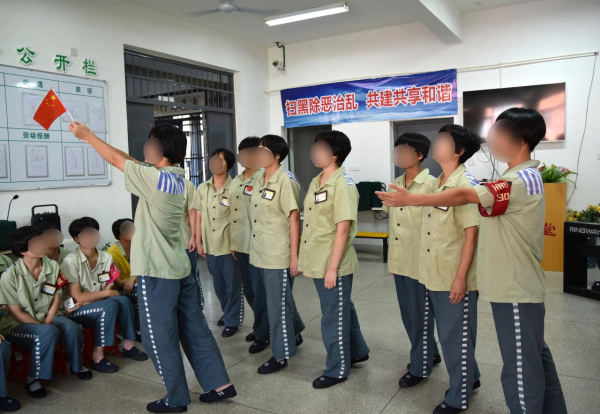 7月1日,监狱操场上,伴随着嘹亮的国歌声举行的隆重升旗仪式,让服刑人员接受了一场爱党爱国的精神洗礼。在升旗仪式现场、在分监区活动室,民警组织服刑人员对着国旗庄严宣誓,“我宣誓:我立志改造为一名中华人民共和国守法公民……”,重温誓言,走好改造新生路。民警还在夜间讲评之前组织服刑人员演唱激扬奋进的红色歌曲,观看《建党伟业》《建国大业》等红色经典电影,寓教于乐,感染打动服刑人员。