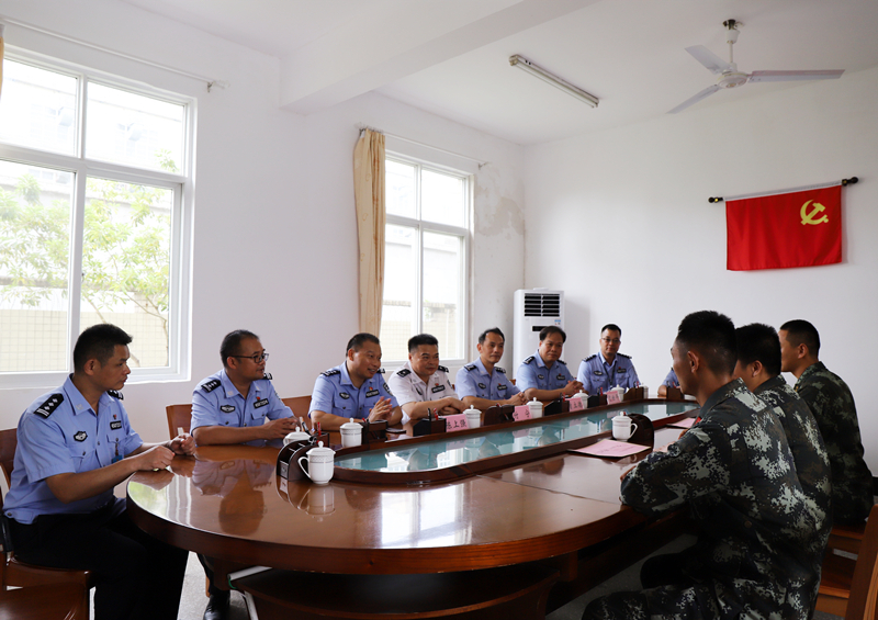 驻监武警中队队长感谢监狱多年来给予的关怀和支持,表示今后一定站好岗,“两警”合作共保监狱平安。