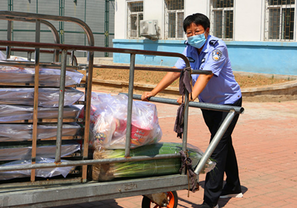 为了保证封闭民警职工能够吃饱、吃好,樊秀艳每天都在忙碌着。疫情严重时期,蔬菜供应紧张,为了节约经费,她戴着两层口罩和手套去批发市场采买,每天自己驾驶私家车按规定准时将食材送入监内;她每日认真统计用餐人员数目,中午将餐盒送到每一个科室人员手中,她深知“一粥一饭亦关乎抗疫”。