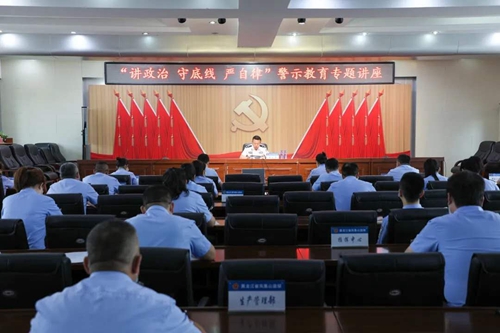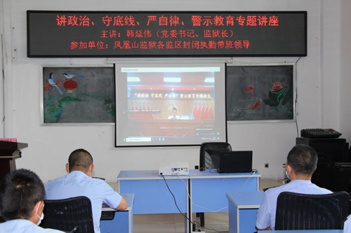 8月28日,凤凰山监狱党委书记、监狱长韩延伟为全体民警党员上了一堂题为“讲政治、守底线、严自律,深入推进落实全面从严治党新要求”的廉政党课,部分党员民警在现场听课,备勤、执勤党员民警通过视频直播听课。