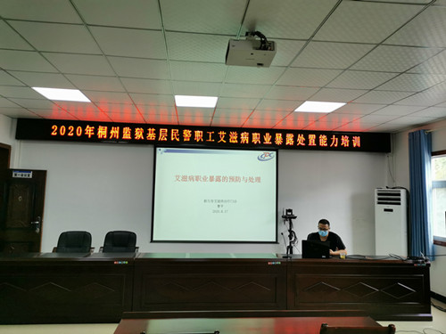 9月3日上午10时,桐州监狱邀请都匀市人民医院抗病毒门诊部的曹平主任,对监狱基层民警职工进行了一次“艾滋病职业暴露处置能力培训”桐州监狱医院干警职工及各监区隔离区干警参加了培训。